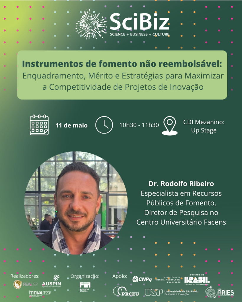 Palestrante: Dr. Rodolfo Ribeiro – Especialista em Recursos Públicos de Fomento – Diretor de Pesquisa no Centro Universitário Facens